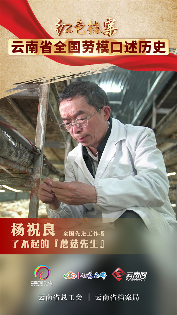 由云南省总工会、云南省档案局联合出品的《红色档案·云南省全国劳模口述历史》新一批微视频正在播出,今天,推出《了不起的“蘑菇”先生——杨祝良》。