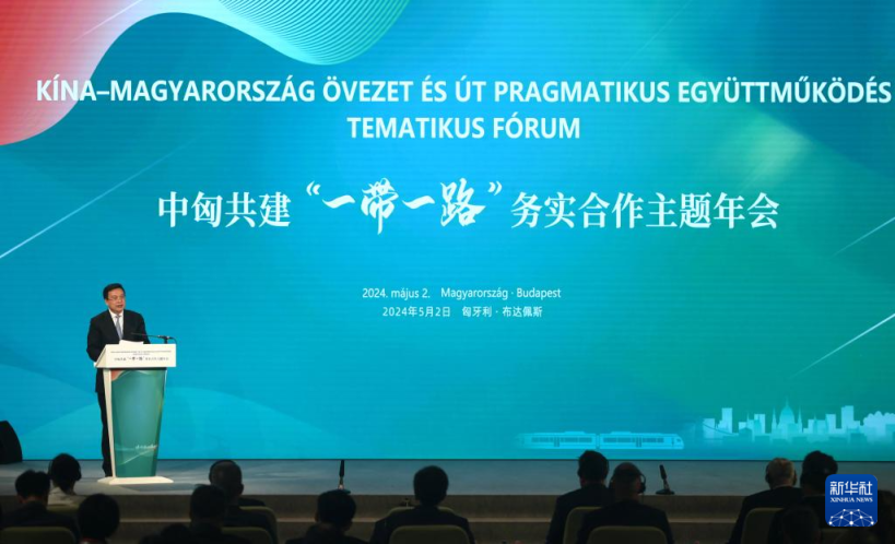 这是5月2日在匈牙利布达佩斯拍摄的中匈共建“一带一路”务实合作主题年会现场。新华社记者 赵丁喆 摄