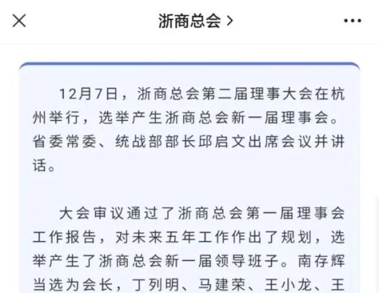 ▲12月7日据浙商总会官微消息