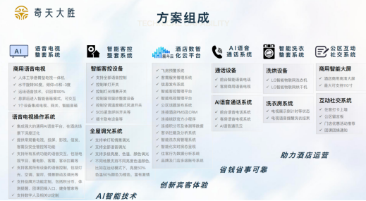 所以奇天大胜的定位就是商用大住宿场景的智能化和数字化服务商,商用大住宿不仅仅是酒店,或者可以理解为类酒店商业体,比如民宿,公寓,医院,月子会所,养老院等等,其实产品和方案基本一致,不一样的是用户群体和服务。
