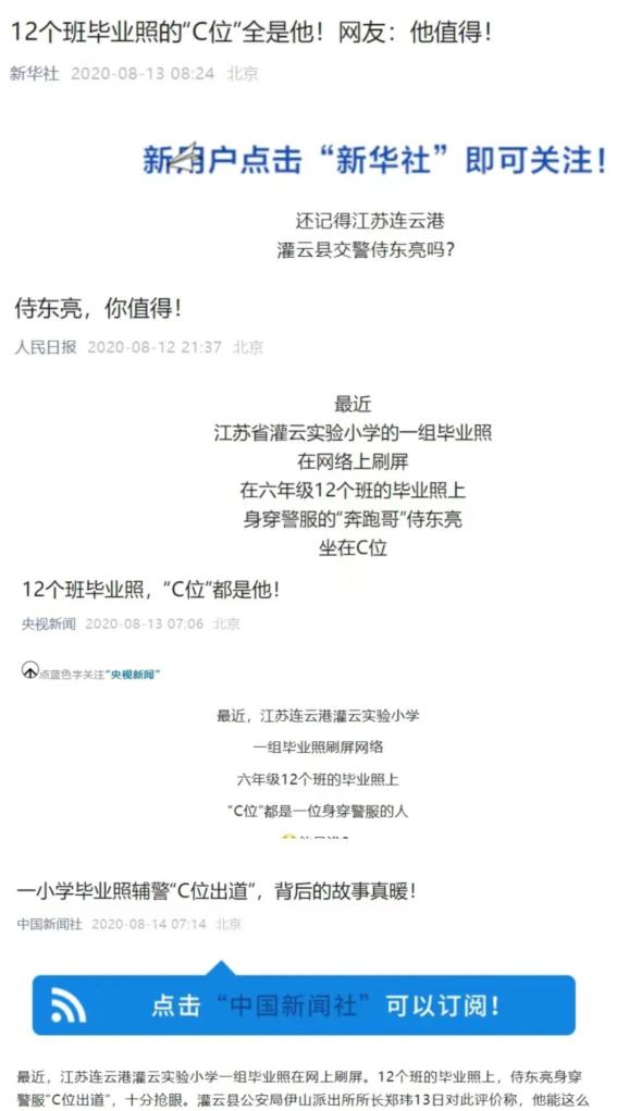 近年来,侍东亮先后获称“中国好人”“百项网络正能量榜样”“平安之星”“平安英雄”和江苏省“道德模范提名奖”“最美诚信之星”“最美辅警”等,被荣记特等功一次、大功一次。
