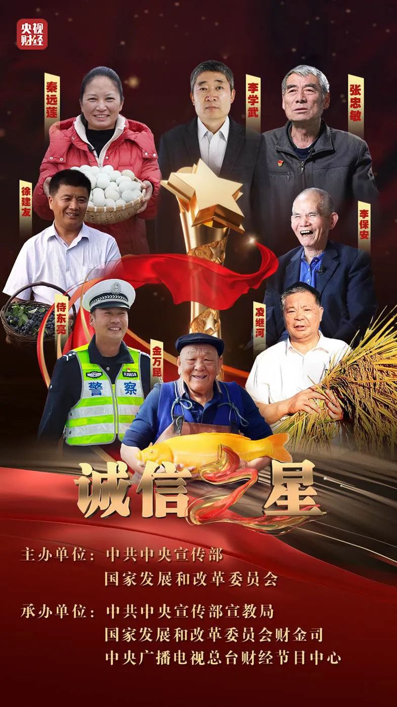 中央宣传部、国家发展改革委联合发布2023年“诚信之星”,来自全国各地的2位先进集体、8位先进个人获此殊荣,他们分别是:安踏(中国)有限公司、陈克明食品股份有限公司、天津市换新水产良种场原场长金万昆、吉林省白山市林源春生态科技股份有限公司董事长徐建友、江苏省连云港市灌云县公安局交警大队辅警侍东亮、江西省绿能农业发展有限公司董事长凌继河、山东省新泰市龙廷镇将军堂村村民李学武、广东省佛山市三水李保安龙舟厂厂长李保安、广西壮族自治区来宾市忻城县古蓬镇龙利村党委书记秦远莲、新疆生产建设兵团第四师可克达拉市七十一团退休职工张忠敏。