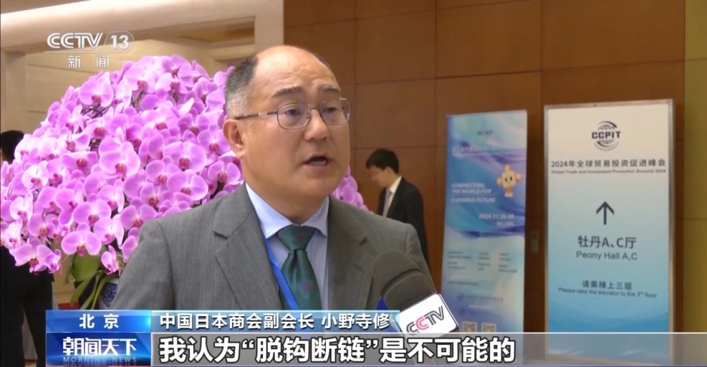 中国日本商会副会长 小野寺修:我认为“脱钩断链”是不可能的,因为中国经济和美国、欧洲、日本是紧密结合的,我不认为这是一件可以实现的事情。