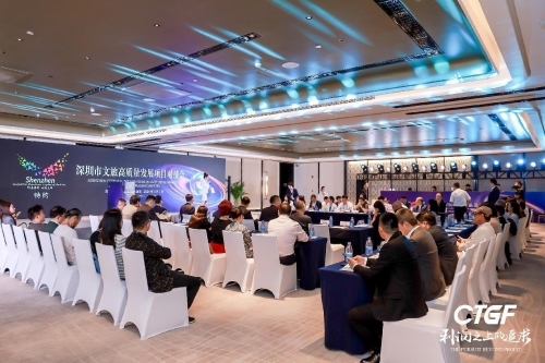 在2024CTGF期间,举行了深圳市文旅高质量发展项目对接会,深圳市文广旅体局、深圳市工商联、各区相关负责人,拟寻找合作方的各项目负责人/对接人,各地来深参会的住宿、餐饮、旅游及产业地产领域的名企负责人共60多位应邀出席。深圳红花岭矿坑生态修复文旅开发项目、前海·华发冰雪世界项目等负责人做路演推介,介绍了项目合作方式、优势资源、报资回报分析等。与会客商达成多项合作意向。