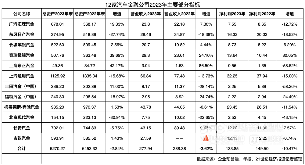 12家汽车金融公司的2023:总资产略降 9家净利润增速为负