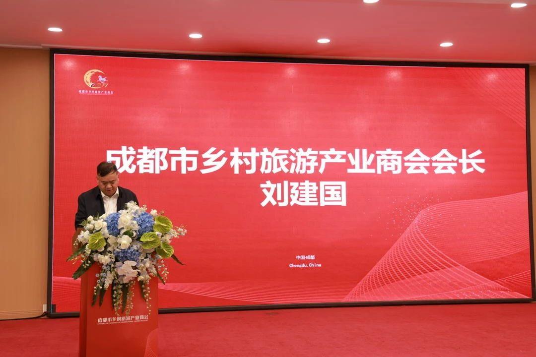 成都市乡村旅游产业商会第三届理事长刘建国进行就职发言