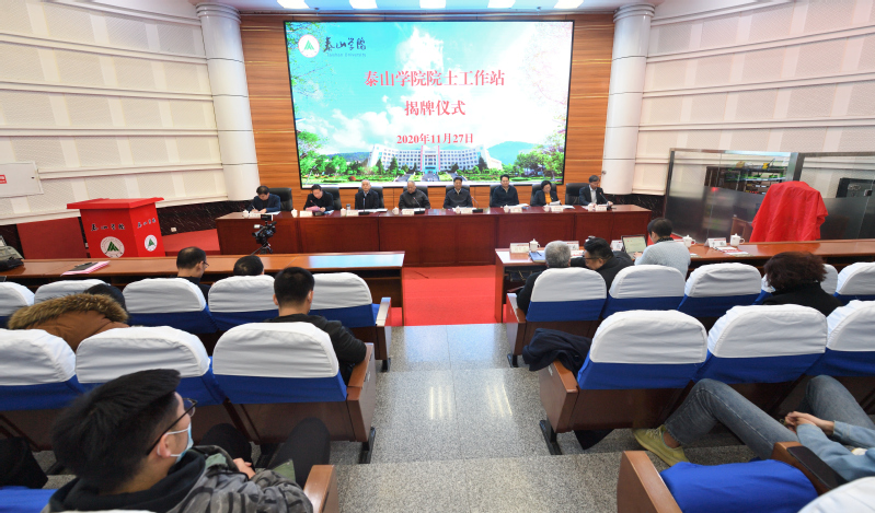 揭牌仪式上,省教育厅科技处处长徐文广宣读了山东省院士工作站备案文件,宣布“泰山学院院士工作站”成立;党委书记范真为魏正耀院士颁发名誉校长聘书;泰安市副市长袁久党与泰山学院党委书记范真共同为院士工作站揭牌。