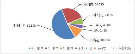 通过数据反映,“半小时内”挂上号的群众占52.50%,说明超半数以上的看病群众能在半小时内挂上号,详见图1—2。