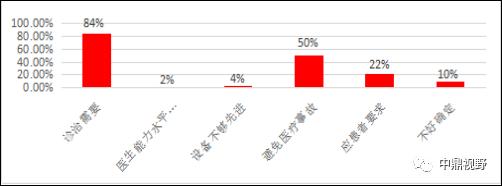 通过数据反映,选择“医生技术”的占67.50%为最高,这也是造成大医院看病群众多,大医院“看病难”的重要因素,详见图1—9。