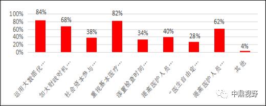(五)“重医轻防”观念带来的“看病难”。在解决“看病难”有效途径数据分析时,有82%的医务人员认同“重视基本医疗和健康知识宣传、解决群众‘小病大看’现象”。现阶段,有的地方“重医疗,轻预防”观念禁锢着医疗卫生事业的发展,大医院大量资金、优质人力用来治疗重症患者,既造成卫生资源使用的浪费,也挤占了大医院有限的卫生投入,导致群众“看病难”问题越演越烈。医疗要从“治”为中心,转向以疾病预防和健康促进为中心,医学与其在下游努力,不如到上游“治未病”。只有加强群众卫生健康知识的宣传,促进康复保健、休闲健身等预防疾病发生理念的养成,既可解群众“看病难”的题,又可用低成本保障群众更多更好的健康。