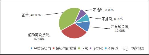 通过调查数据反映,认为“超负荷能接受”与“正常”的医务人员占比达72%,说明医务人员都能接受目前的工作量;同时,认为“超负荷能接受”与“严重超负荷”的医务人员占44%,也说明目前的工作量还是超负荷的,详见图1—11。