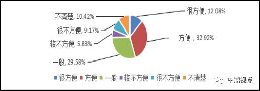 据数据反映,认为“较不方便”和“很不方便”的群众仅占15%,一定程度上反映看病群众出入院手续办理较为方便,多数群众未明显觉得出入院手续办理不方便带来的“看病难”问题,详见图1—7。