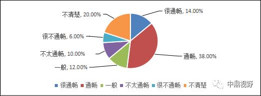 通过调查数据反映,认为本院APP、网站及公众号挂号“通畅”以上的医务人员占所有调查医务人员总数的52%,说明超半数的医务人员认同本院APP、网站及公众号挂号是通畅的,一定程度上缓解了群众到医院窗口排队挂号“看病难”问题;有20%的医务人员不清楚本院APP、网站及公众号挂号信息,说明这部分医务人员不太关注这方面的问题,网络挂号是引导和分流窗口挂号,解决群众现场排队挂号“看病难”的重要因素,详见图1—12。