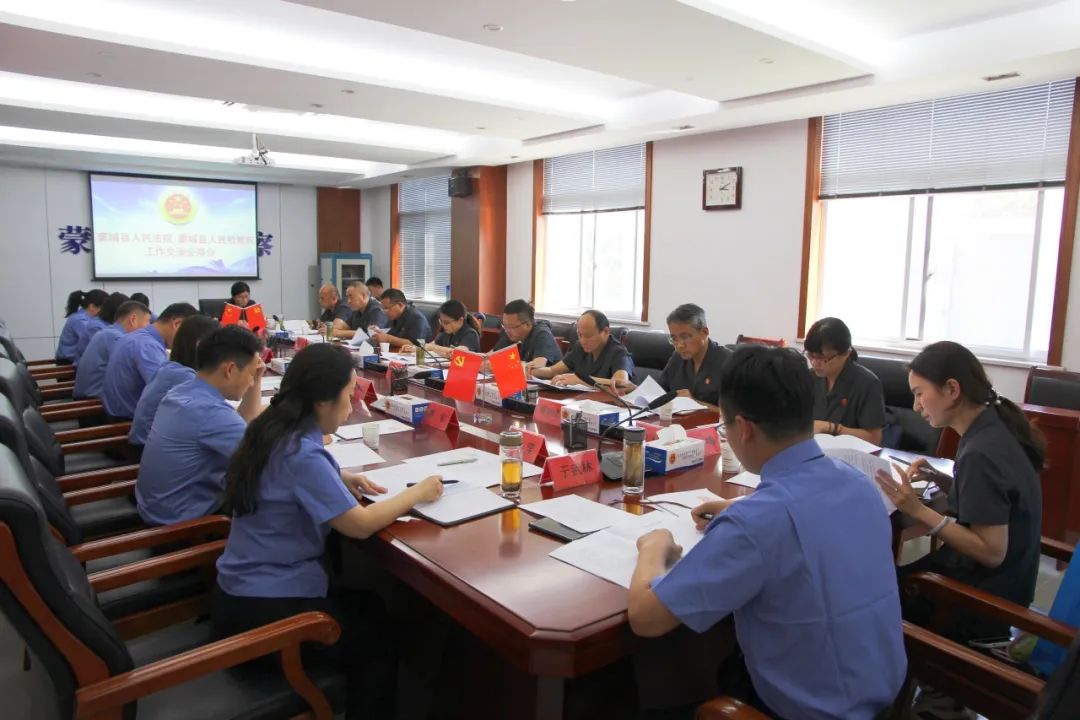 5月15日下午,蒙城县人民法院、蒙城县人民检察院举行县“两院”工作交流会商会第一次会议,进一步深化法检良性互动,共同推进严格公正司法。县法院党组书记、院长张贝贝,县检察院党组书记、检察长丁杰出席会议并讲话。