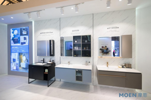 摩恩德纳系列侧喷铝合金淋浴系统,采用雾化喷射淋浴技术,喷头可360°随心调节,侧喷大范围水花设计,可持续对后背进行冲洗,有效缓解都市疲劳,开启居家沉浸式舒缓按摩沐浴体验。当下年轻用户的消费主流趋势是,复合功能、,品质、个性化色彩搭配我都要。摩恩特别推出的针对各类浴室空间及家庭需求的浴室柜定制化增值服务,用户可以尽情个性化自由搭配,打造与众不同的浴室空间;Impressa 3D印象水槽,采用LOTUS荷净镀层技术,140mm平盖枪灰色落水头,Anti-scratch Pro 升级纹路美学,底部小米粒纹路疏密性改善,轻松易清洁又可大幅提升厨房美感和质感。更有多彩台盆、花洒、多色石槽等产品,将简约、耐用、技术与性能融合,完全契合了年轻人的生活场景与生活方式,让用户在日常洗漱沐浴之际沉浸在五彩世界,将家居的美学表达和幸福体的生活验直接连接。