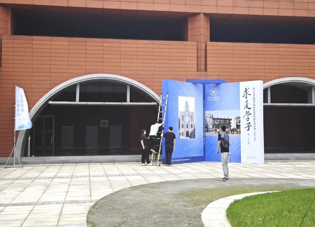 就如同此次采访前,他已经连续几天忙于全日制本科校友纪念册发布仪式的筹备。活动前一日,他亲自来到浙大紫金港校区管院大楼前,指挥活动的现场布置与搭建。
