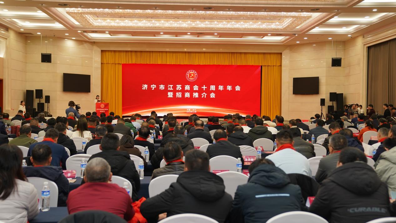 12月23日下午,济宁市江苏商会十周年年会暨招商推介会活动在圣都国际酒店举行,济宁市政府党组成员、副市长刘东波 ,济宁市政协副主席、市工商联主席、市总商会会长李敬,江苏省工商联会员处处长徐卫云、山东省江苏总商会会长李松华等现场出席,企业代表、本市和外地兄弟商会、会员近三百人参加了此次活动。活动通过网络平台同步直播,江苏籍业界嘉宾线上进行了观看。