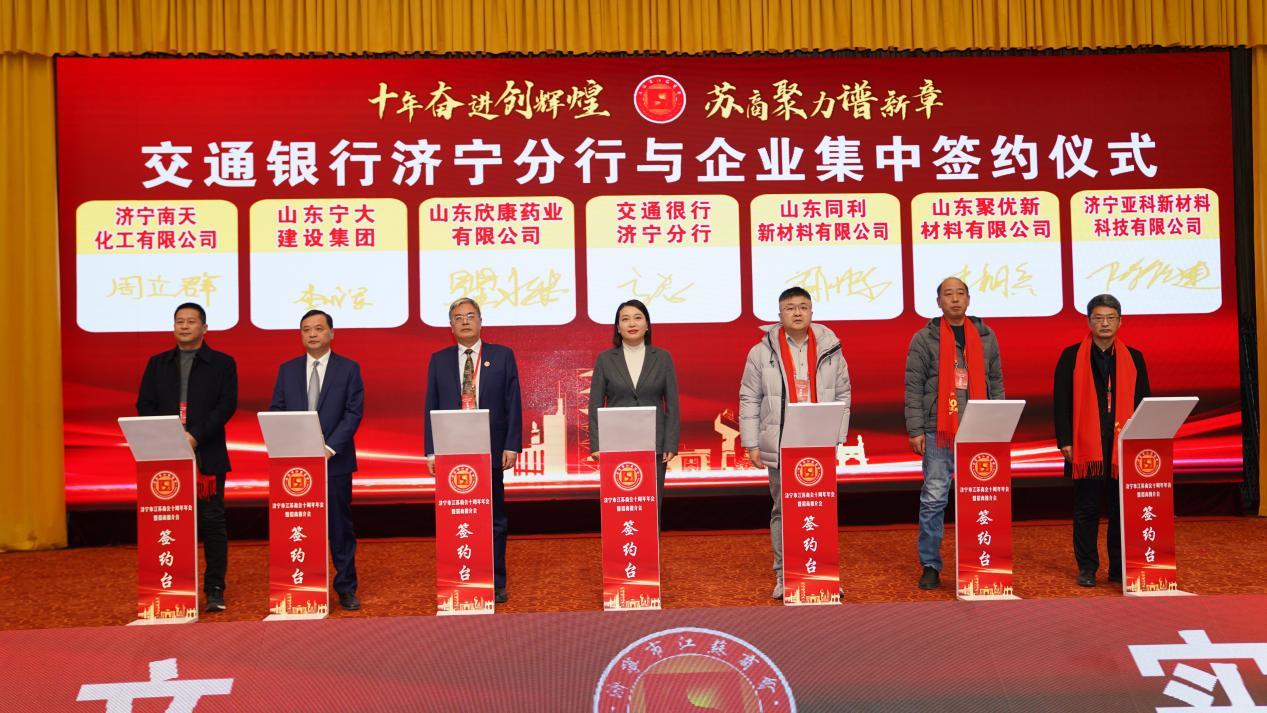 签约仪式上,交通很行济宁分行分别与济宁南天化工有限公司、山东宁大建设集团、山东欣康药业有限公司、山东同利新材料有限公司、山东聚优新材料有限公司、济宁亚科新材料科技有限公司进行合作签约,随后交通银行济宁分行做了金融产品推介。