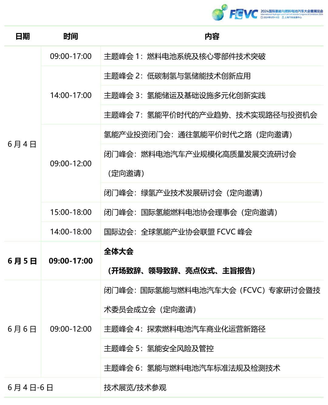 由中国汽车工程学会与国际氢能燃料电池协会共同主办的“2024国际氢能与燃料电池汽车大会暨展览会(FCVC 2024)”将于6月4-6日上海汽车会展中心召开。大会将以“聚力创新 氢动未来—坚定推动氢能与燃料电池汽车高质量发展”为主题,大会包含:1场全体大会,7场主题峰会及5场同期会议,大会将发布150+场演讲报告,预计有1,200+参会嘉宾共同参与。
