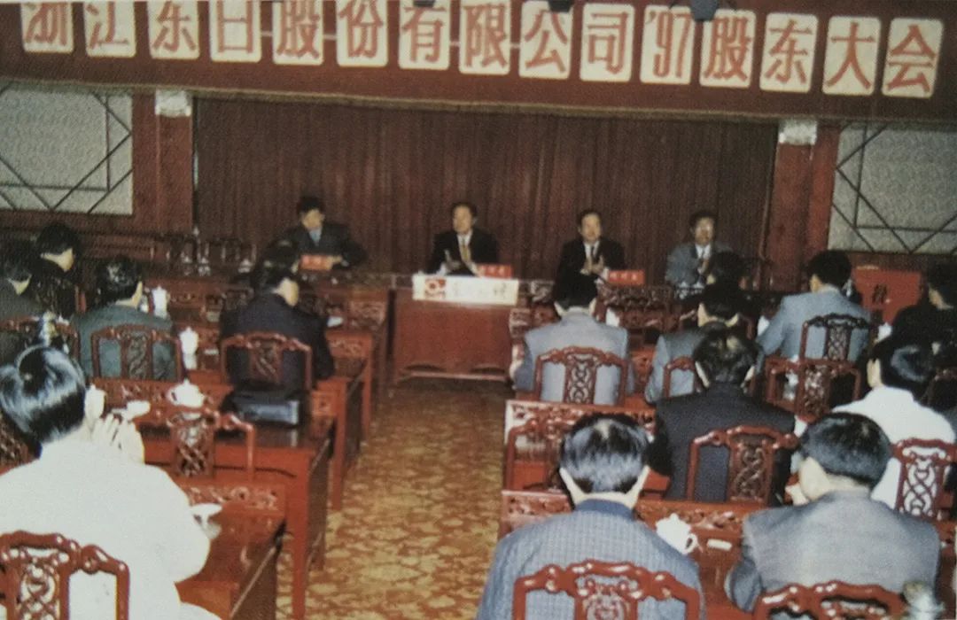 1997年,浙江东日股票在上海证券交易所上市,系温州第一家上市的公司股票。图为公司股东大会