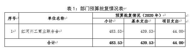 2020年红河州财政局下达红河州工商业联合会预算总额483.53万元,年初批复预算情况如表1所示: