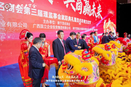 南宁茂名商会第三届理监事会就职典礼到此圆满结束。茂名年例文化节正式开始。茂名年例,是茂名农村历史悠久且规模最大的传统节日。始于古老的岭南祭祀,现已发展为融合多种文化元素的华南地区最具特色的民俗文化综合节日。年例活动包括起年例、正年例、年例尾等环节,其中有敬神、摆盅、打醮、祭拜、挂花灯、游神、放鞭炮等传统仪式,也包括舞狮、舞龙等文艺表演。茂名年例被广东省政府授予非物质文化遗产保护名录。茂名年例不仅传承了中华优秀传统文化,也传播了“好心文化”精神,弘扬国家统一、和谐团结的主旋律,成为粤西地区最隆重、具有影响力的民俗活动之一。