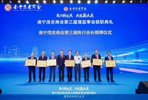 接着到了授牌仪式,分别为南宁茂名商会会长、名誉会长、创会会长、商会党委首任书记、执行会长、监事长、常务副会长、副会长授牌。南宁茂名商会是茂名人在南宁从商的聚集地、大家庭!在这奔流激荡的商业大河里,祝愿新一届领导班子紧密团结全体商会成员,传承茂名人的拼搏精神,秉持好心、信心、恒心、耐心和热心,怀揣家国情怀与社会责任,生生不息,踔厉奋发,勇毅前行!