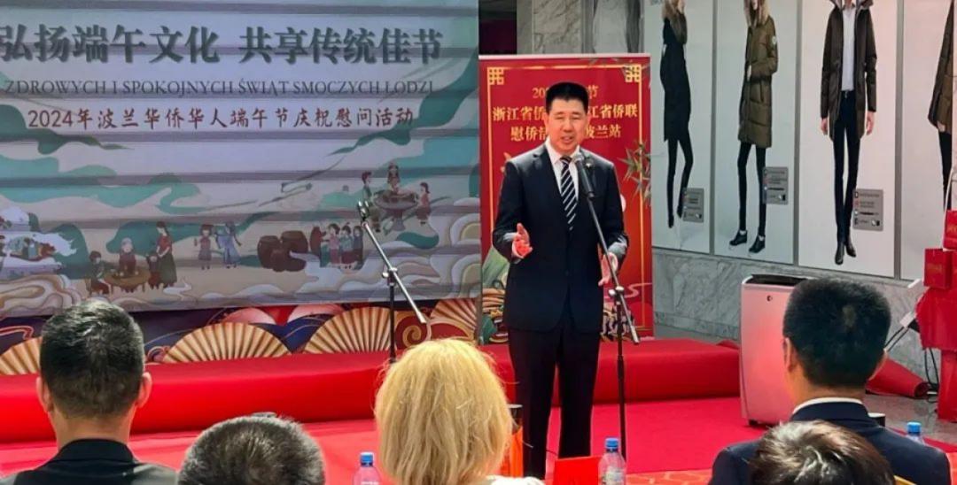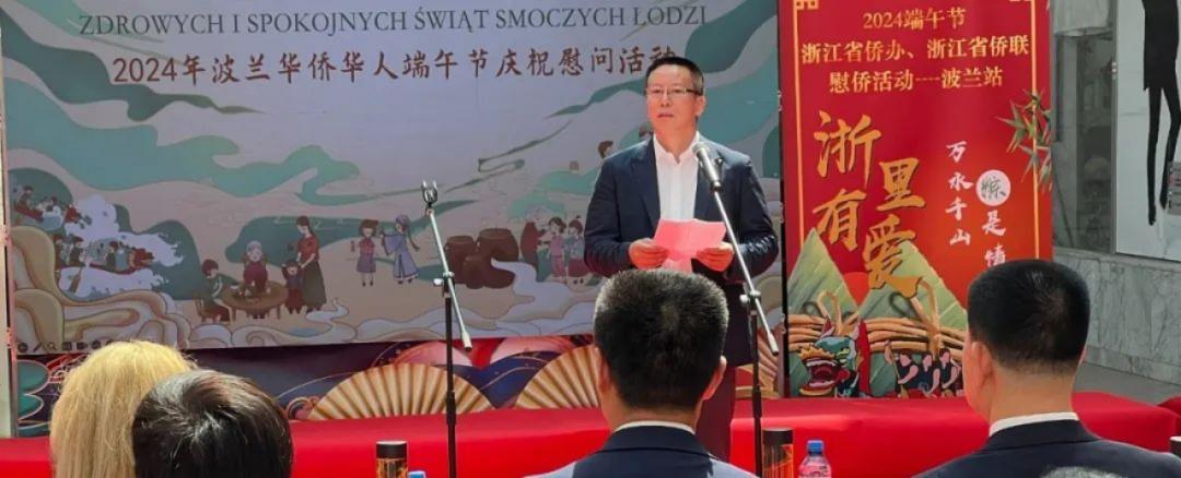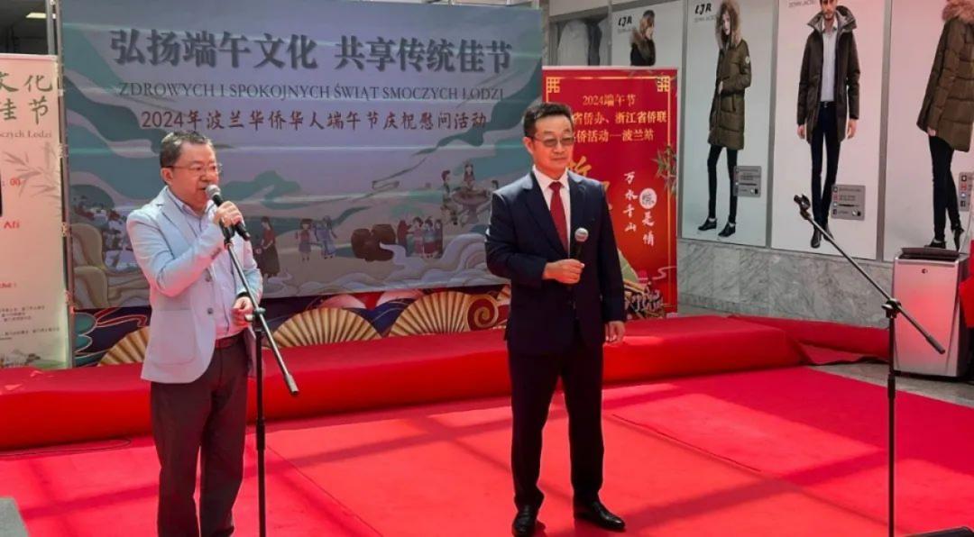 6月8日,“2024浙里有爱·万水千山‘粽’是情”端午慰侨活动波兰站在华沙中国商城举行,此次活动由中国驻波兰大使馆指导,浙江省侨办、浙江省侨联联合波兰华侨华人协会、波兰浙江商会、波兰华人青年联合会、波兰华人商会、波兰瑞安同乡会、波兰华人妇女联合会、波兰青田同乡会等共同举办。中国驻波兰大使孙霖江,波兰前副总理兼经济部长、波兰亚洲商会主席亚努士·皮耶豪钦斯基,Piaseczno地区社会福利中心院长、旅波华人华侨社团代表、商城华商及其家属等出席活动,活动由波兰浙江商会会长傅利敏、波兰华人商会秘书长李雁共同主持。
