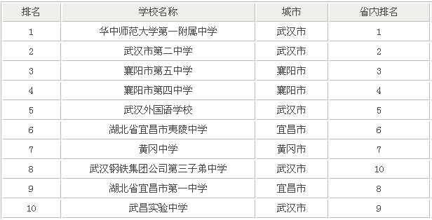 从各方面综合实力来看,鄂州高中在当地是享有非常高的人气的,但是湖北是我国教育强省,拥有不少的知名学校,鄂州高中在湖北并没有排到前十名的好成绩,而是排名第12名,以下是湖北排名前十的高中学校: