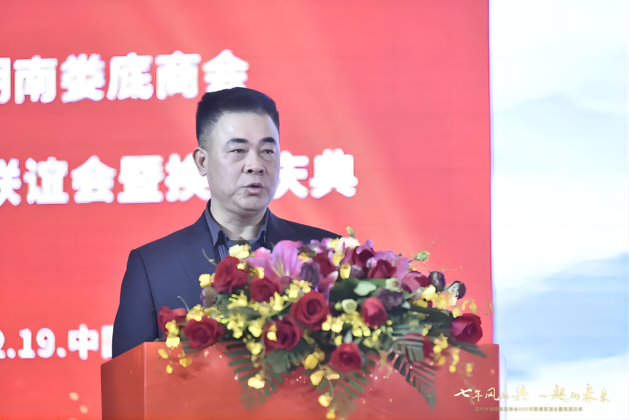 春风舞动门前柳,喜雨催开苑里花。2月19日,正值雨水时节,深圳市湖南娄底商会以“七年风雨共 一起向未来”为主题,在深圳福田香格里拉大酒店隆重举办了2023年新春联谊会暨换届庆典,商会顾问、全国政协原常委、广州军区原副司令员、中将龚谷成,商会顾问、深圳市委原常委、警备区政委曹绍业,商会创会功臣、深圳市纪委原主任、巡视员颜涛,深圳北理莫斯科大学党委书记朱迪俭,湖南省人民政府驻深圳办事处党组成员、副主任李永东,娄底市委常委、市委统战部部长康艳华等出席大会。商会全体会员、嘉宾、顾问、娄底市及下辖各县市区相关单位同志、全国各地娄底商会代表、深圳湖南各兄弟商会代表、商会各友好合作单位代表、关心和支持深圳娄底商会发展的各届人士等共600余人齐聚一堂,共叙情谊,共庆娄商盛会,共赴高质量发展的“星辰大海”。