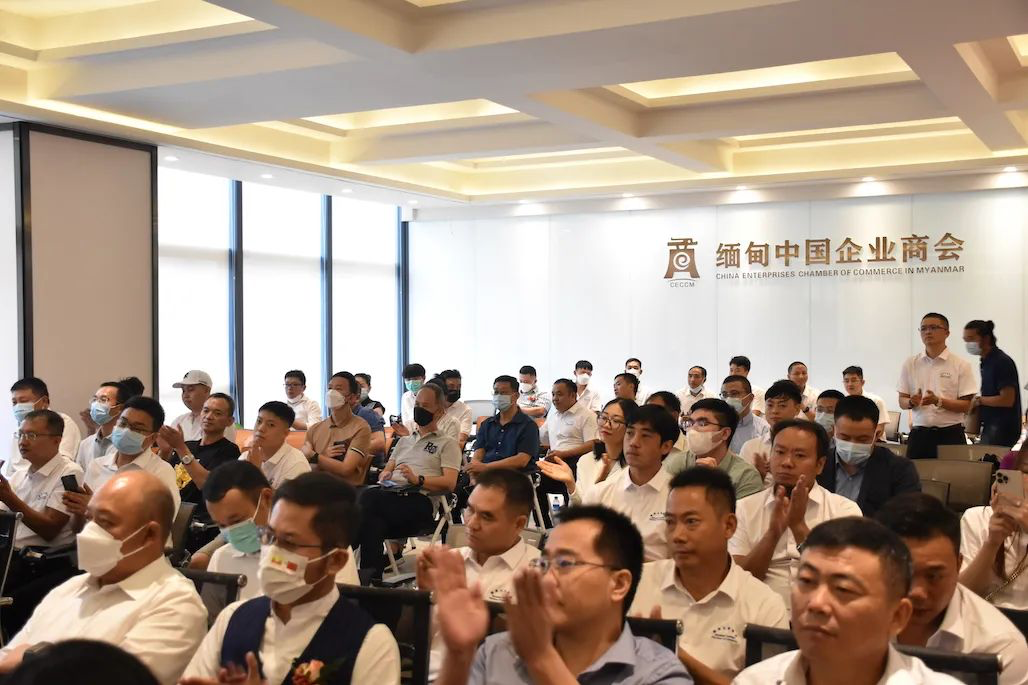 缅甸(中国)云南商会会长谢明贵首先致辞,“我们将在中国驻缅甸大使馆的领导下,热爱祖国,拥护中国共产党领导,在异国他乡维护祖国的荣誉,带领商会为在缅的云南企业和云南人服务,架起云南各级政府与在缅云南人之间的桥梁。致力搭建起中国驻缅大使馆、云南各级政府与云南在缅企业与个人沟通交流平台,商会也将尽可能关爱与帮助身边的缅甸员工和困难群体,为他们提供力所能及的帮助。”