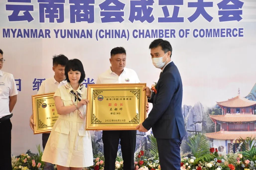 【缅甸金凤凰讯】2022年8月13日下午,缅甸(中国)云南商会在缅甸仰光隆重举行成立大会。中国驻缅甸大使馆经济商务参赞谭书富、缅甸(中国)云南商会会长谢明贵、仰光投资委员会副主任杜穗穗温(Daw Swe Swe Win)、中国文化中心兼驻仰光旅游办事处主任徐玲、缅甸中国企业商会常务副会长骆军、缅甸云南商会会长谢明贵、YOMA集团CEO潘嗣荫、缅甸(中国)云南商会监事长张伟宏、仰光云南会馆虞有海荣誉会长,以及各地方商会、兄弟商会的嘉宾、代表和缅甸(中国)云南商会会员等近200人出席典礼,共同见证这一重要时刻。