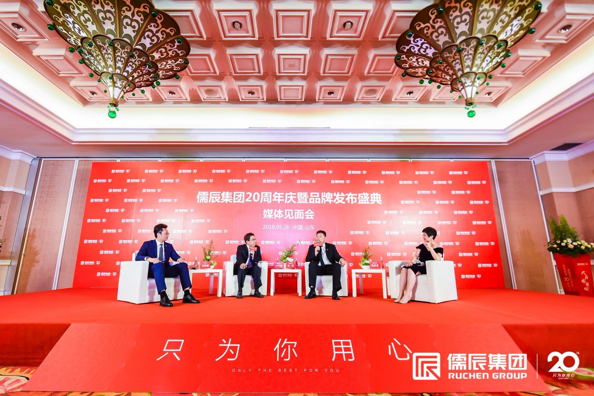 活动现场发布了两段企业视频,把儒辰集团的创业历程娓娓讲述,展示了其风雨兼程的恢弘壮丽之路。儒辰纪录片表现了公司20年来追求卓越品质对于匠心的坚守,一个企业从起步到转型到成功的非凡历程。儒辰集团乘改革东风起步,1998年下海创业,2002年进军日照,初涉房地产开发,2006年独立开发北城地标性项目-环球国际,“环球系”品牌正式创立,一路高歌,高品质的品牌形象深入人心。随后,儒辰集团在临沂北城新区开发了众多的标杆项目,赢得了社会的广泛认可。2014年,儒辰集团挂牌成立,正式启用“儒辰”品牌,标志着公司正式开启了集团化运作。直到2017年,儒辰集团旗下多个高品质项目开盘即清,集团的销售额、市场占有率以及市场口碑达到了前所未有的高度,奠定了儒辰集团山东本土区域品牌房企的地位。