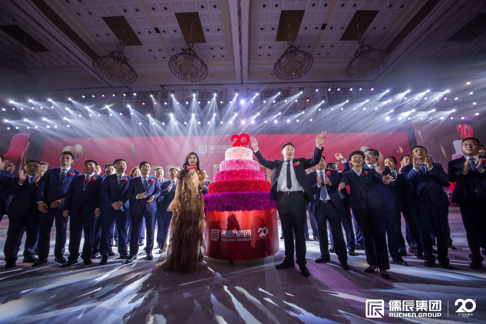 在活动接近尾声时,随着巨幕舞台上推上了5层高的巨型鲜花蛋糕,在央视大咖水均益、张泉灵的共同主持之下,儒辰集团一众领导人一起登台,与范冰冰同台,并由全场现场观众齐唱“生日快乐歌“,回顾集团20载鎏金岁月,20年茁壮辰长,祝福儒辰诞辰20周年,儒辰集团基业长青。