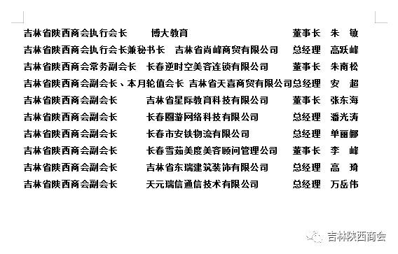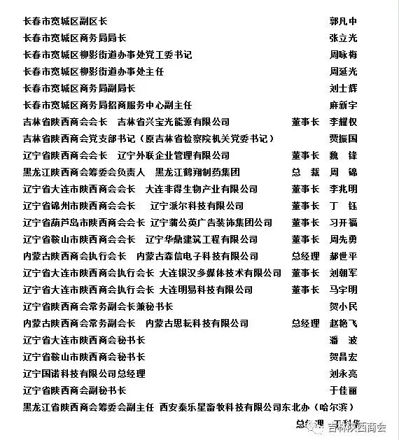 参加东北区域陕西商会联谊会活动的领导及嘉宾名单: