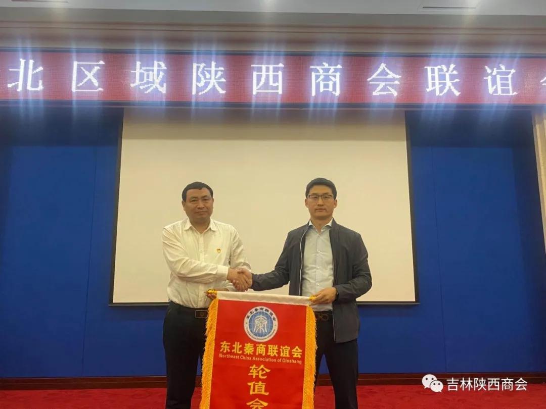会后辽宁省陕西商会与吉林省陕西商会举行了“东北区域陕西商会轮值会长” 授旗仪式并合影留念。