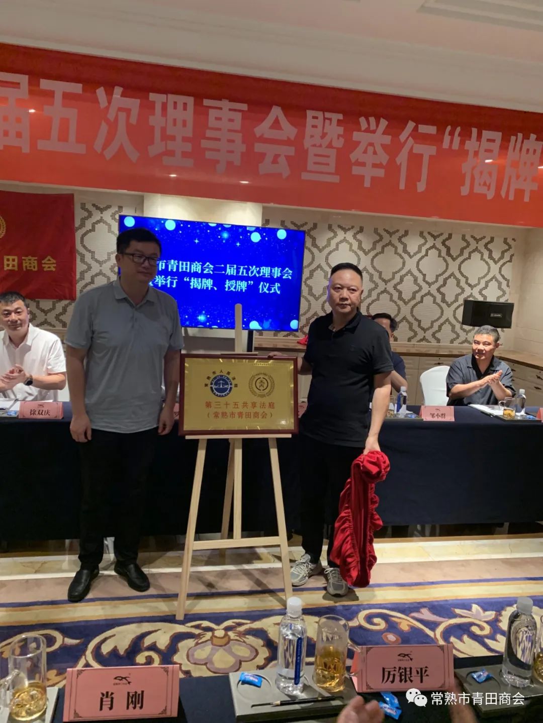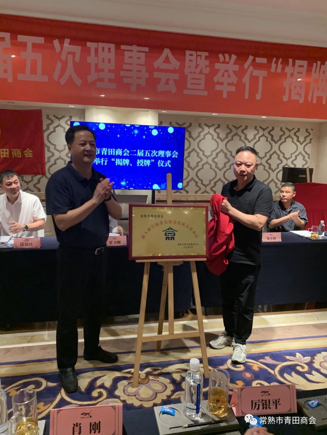 常熟市青田商会召开二届五次理事会暨举行两个共建合作单位的铜牌“揭牌、授牌”仪式