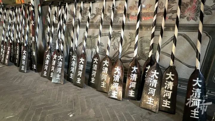 丁大爷的龙舟叫“大清河主”,这船来头可不小,是一艘龙舟娘(也叫龙娘、龙娘船,是一个区域内所有龙舟之首,船大,划手多,但不参与龙舟竞渡,有管理其他龙舟和提供紧急救援的功能),它的船身比其他20米长的龙舟还要长3到4米。