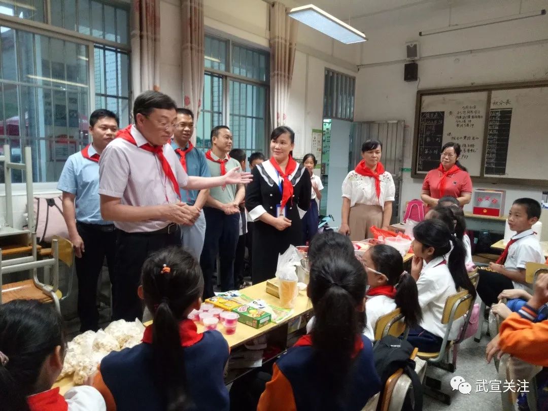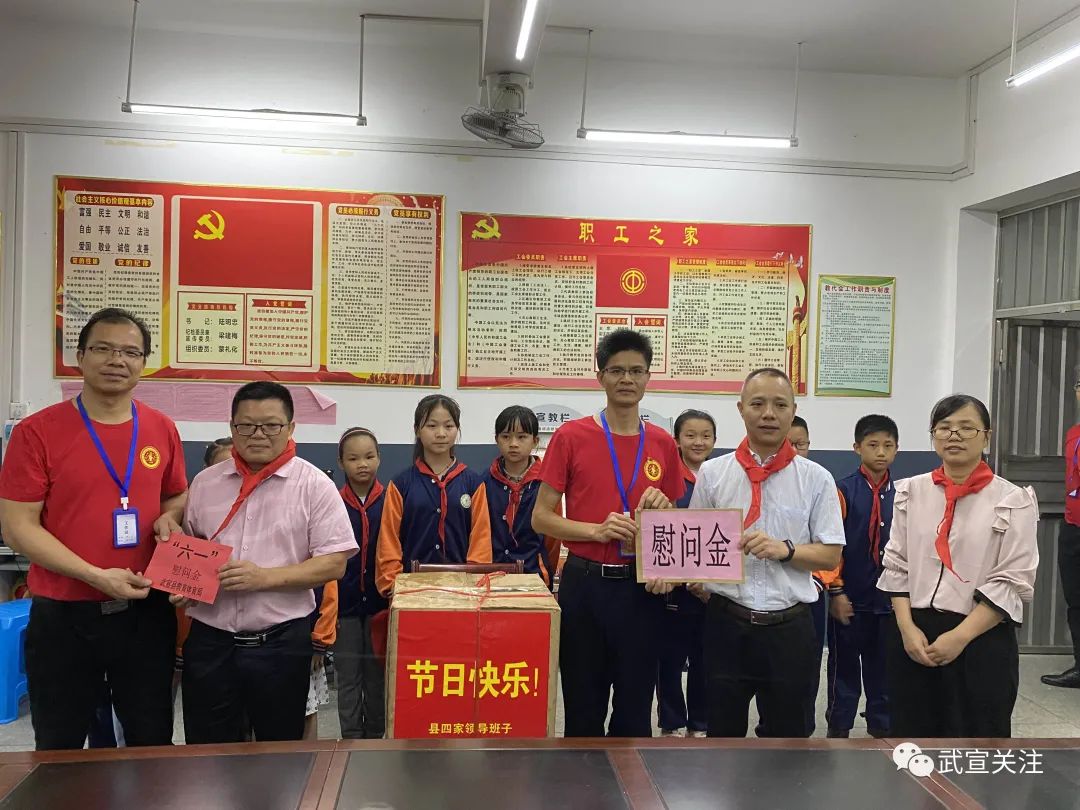 在武宣县实验小学教育集团总部校区,县委书记杨世爵给小朋友们送上节日的慰问品、慰问金和节日的祝福,并向为孩子们健康成长付出辛勤劳动的广大教师表示崇高的敬意。