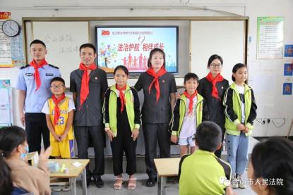 为贯彻落实今年6月1日正式实施新修订的《中华人民共和国未成年人保护法》与《中华人民共和国预防未成年人犯罪法》,在6月1日儿童节当天,团市委与兴宾区检察院走进五山镇周罗教学点,以一场普法讲座、“云”游检察院的新形式开展了一场别开生面的“检爱同行,共护未来”主题送法进校园活动。