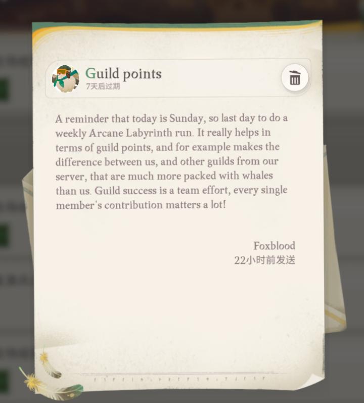 我在《 剑与远征:启程 》国际服加入了一个公会,公会里基本上没有什么氪佬,大家战力都很平均,会长经常会发邮件告诉我们怎么获取公会积分。