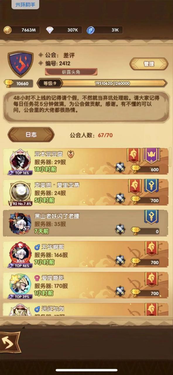 所以公会里的成员现在都知道怎么玩,共同努力之下,我们公会在合区后还能排到第七。