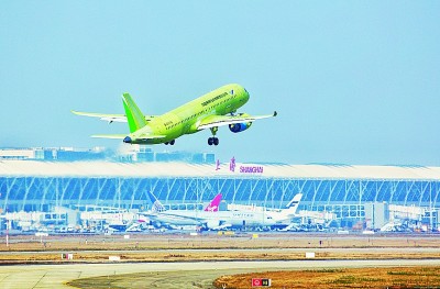 2019年12月27日,C919大型客机106架机在上海浦东机场起飞。新华社发