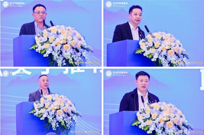 随后,杭州市政协副主席、市工商联主席冯仁强,安徽省工商联党组成员、副主席李俊波相继上台致辞,寄语商会、祝福商会。冯仁强主席在致辞中盛赞在杭徽商的艰辛付出和不懈努力,为杭州的发展做出了巨大的贡献,也为未来的发展奠定了基础。他深情寄语在杭徽商要继续展示精彩人生和创业风采,在商会新的领导班子带领下,再接再厉,再创辉煌,坚持“政治建会,团结立会,服务兴会,改革强会”,共同努力把杭州市安徽商会建成百年商会。