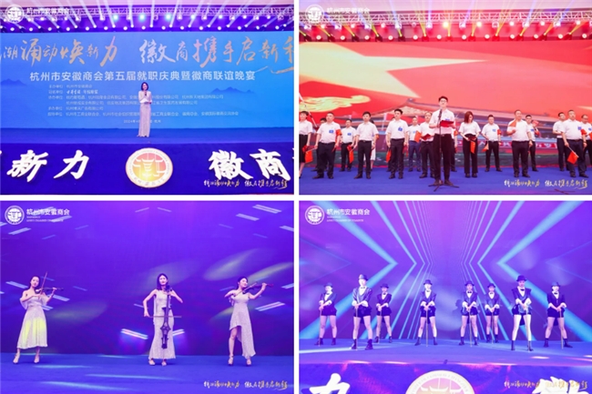 第三阶段,隆重举办第五届就职庆典,浙皖两地领导先后为商会第四届“徽骆驼”、“回馈桑梓”、“优秀徽商”、“高质量发展”、“功勋徽商”等称号和奖项颁奖,为第五届领导班子成员授牌,共同见证这一重要时刻,开启美好未来。