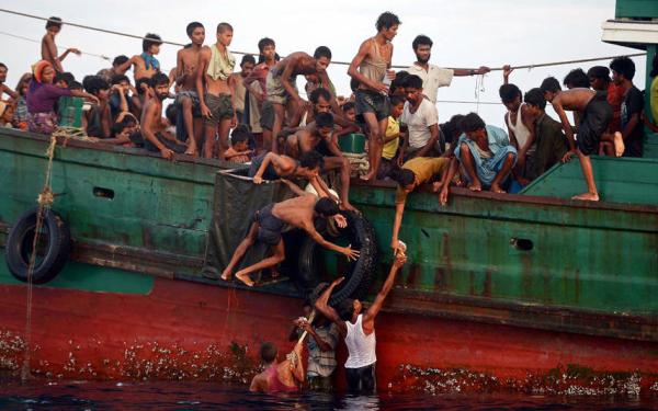 最近,缅甸的罗兴亚难民潮再次引起国际社会的关注。一艘艘满载罗兴亚难民的船只在马来西亚、印尼及泰国海域被发现,这些偷渡船只在海上漂流了多日,由于食物和饮用水的缺乏,已有不少难民死于船上,难民中甚至发生因争抢食物而自相残杀的悲剧。然而,相邻国家的政府对这些难民却表现出异常的冷漠,马来西亚执政当局严令禁止他们登陆,泰国和印度尼西亚政府海军也只给予有限的人道救援工作,如修理船只引擎,提供燃料、食物、饮用水后,将船只拖离该国海域,拖入公海,让他们自由选择进入澳大利亚或新加坡。